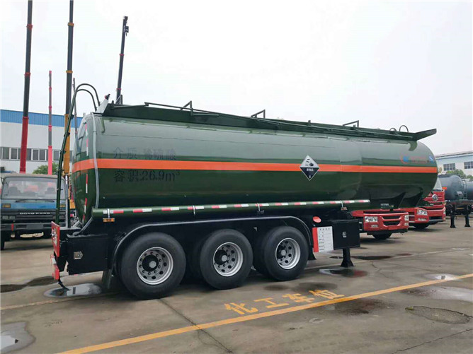 稀硫酸作為重要的化工原料,廣泛用于各大型化工產品企業生產中,由于介質具有較強的腐蝕性,其運輸也必須使用專業的罐式車,我公司是生產化工液體半掛車的知名廠家,今天為大家介紹一款26.9立方稀硫酸半掛車,性價比不錯,可靠耐用。