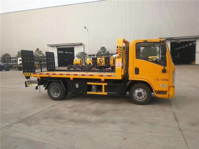 性能特點:可承載3噸貨物,一拖二結構,配4噸絞盤,雙側聯動操作,壓制板,輔助小車對,帶4條綁帶。