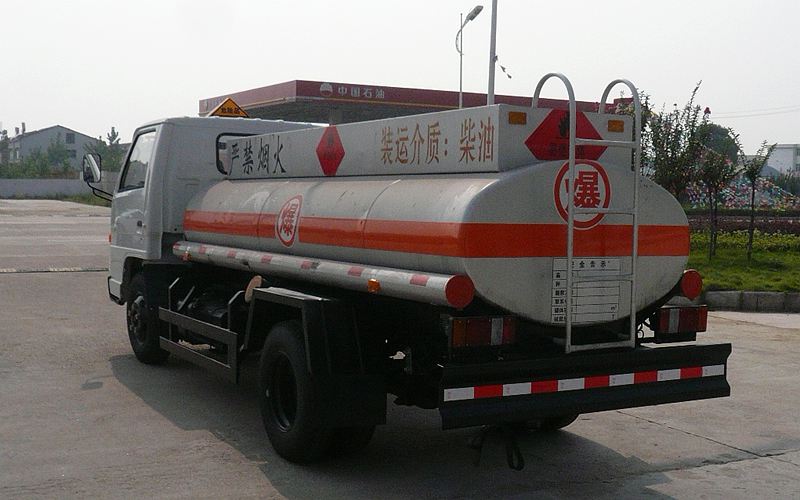 產品簡述 | 江鈴加油車采用原裝江鈴底盤生產,江鈴110馬力發動機,7.00R16鋼絲胎,采用Q235-5毫米板材生產,罐體容積5立方米。 |