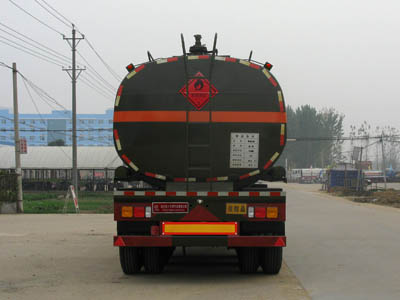 其它 | 罐體有效容積:25.4立方米,介質:二硫化碳,類項號:3,密度:1.26噸/立方米,罐體外形尺寸(長/長軸/短軸)(mm):9100/2350/1550。該車前部選裝水箱和工具箱時整車長度為9800mm;該車選裝空氣懸掛。采用適用于牽引危險品運輸半掛車的牽引車。防護材料:Q235A碳鋼,連接方式:左右側面及后下部防護均采用焊接連接,后部防護斷面尺寸(mm):120×50,后部防護離地高度(mm):520。ABS生產廠家:焦作博瑞克控制技術有限公司,ABS型號:G ABS。 | ||